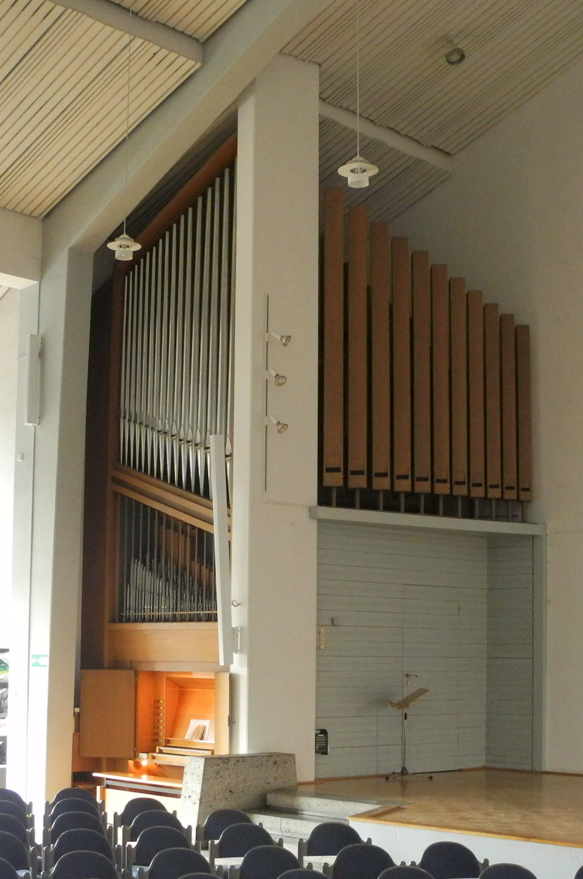 Das Instrument ist ein Kind ihrer Zeit, sie wurde von Dr. Walter Supper disponiert, geplant und abgenommen. Die Orgelbaufirma Link aus Giengen bekam 1961 den Auftrag, das Instrument in Zusammenarbeit mit dem Architekturbüro zu bauen. Klanglich und optisch folgt die Orgel den Eigenheiten der Orgelbewegung, besonders auffällig ist der "conische Prospekt, der Plexiglasschweller und die Schrägstellung des Registersubbasses 16' ", zu dem der Orgelsachverständige der Gemeinde 1965 herzlich gratulierte.