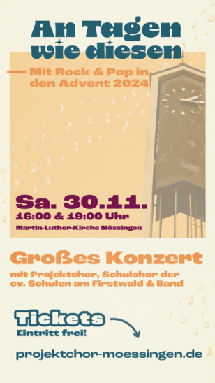 Von Katharina Gurski 06 Dez Mit Rock und Pop in den Advent Am 30.11.2024 gab es ein großes Konzert des neuen Projektchors "An Tagen wie diesen" und Band unter Chorleiter Harri Pallas. Weiterlesen … Mit Rock und Pop in den Advent